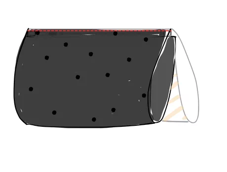 Faire ressortir la fermeture puis placer l’autre coté du tissu extérieur et de la doublure sur l’autre coté de la fermeture, toujours endroit contre endroit. Epingler et coudre à 1 cm du bord.
